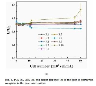 (1)详细区分传感器对不同浓度嗅味物质的响应,并进行主成分分析(PCA)和线性判别分析(LDA);(2)通过电子鼻检测研究对不同密度的铜绿微囊藻产生的挥发性嗅味物质的分析;(3)探究电子鼻的区分程度以及相应的传感器响应强度,为水中嗅味物质的快速、稳定检测提供可靠数据。