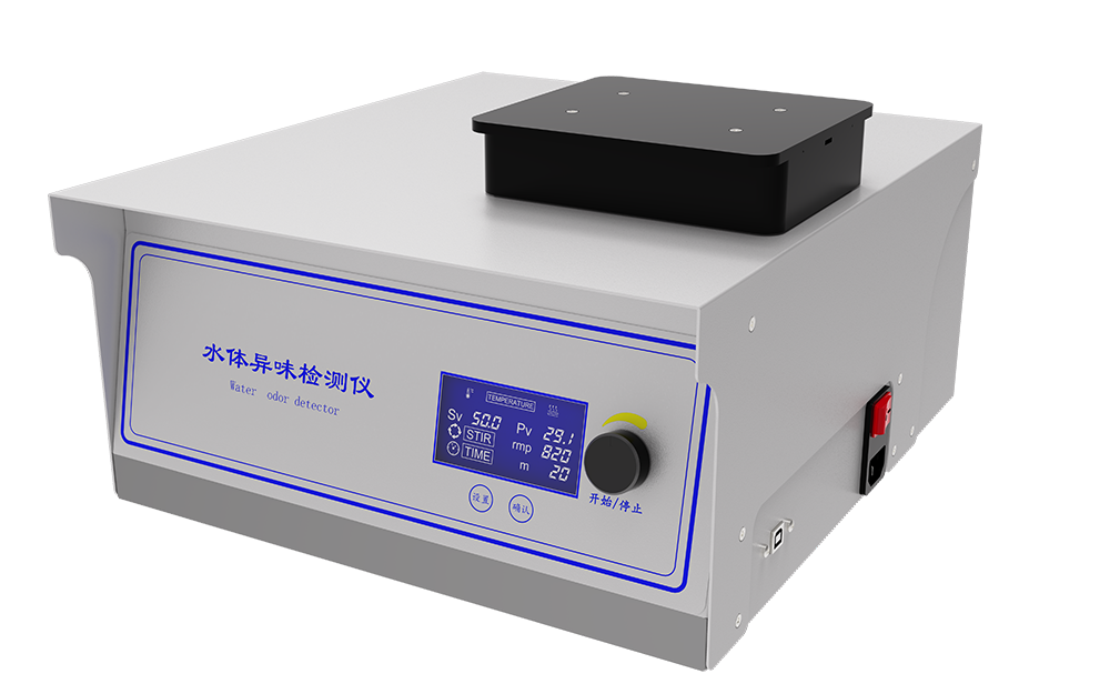 水体样品前处理装置可对水体样品进行加热和搅拌定时收集水体异味挥发的顶空气体,通过内置金属氧化物传感器阵列的响应信号结合系统内置PLS分析模型,快速获得水体异味强度和异味浓度值。